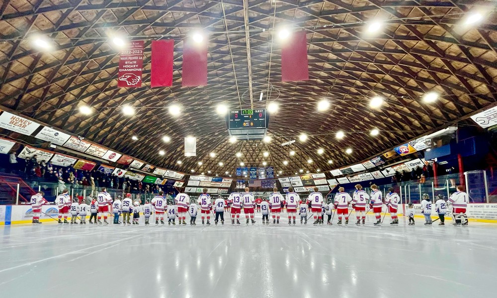On January 7th, the Northland Pines Boys Hockey team will face off against Hayward in the Dome at 7 PM. Youth players, families, and the entire community are invited to attend. Fans are encouraged to wear jerseys (old or new) or red, white, and blue gear to show their support and pride.